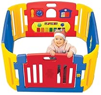 With the Friendly Toys Little Playzone with Sounds and Lights your child will have an instant entertainment area that is enclosed and safe. This Friendly Toys Little Playzone with Sounds and Lights has a four sided design, but Friendly Toys Little Playzone with Sounds and Lights is really eight pieces as the corners are rounded. All of the walls connect together, and you can purchase additional panels to connect them together in different shapes. The size of this play enclosure is approximately twenty three inches high, by forty six inches square. The entire structure is made of safe non toxic plastic that is quite durable. Easy to follow instructions are included for self assembly. The Little Playzone will break down easily for storage, or to take along with you on trips or vacations. The model of this play yard is the Little Playzone because it includes several built in activities for your child to enjoy.